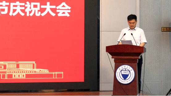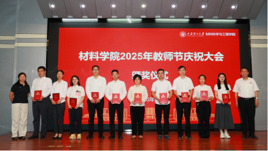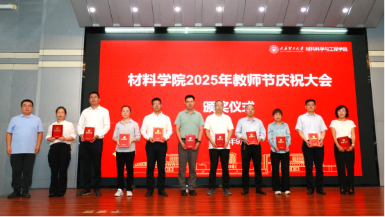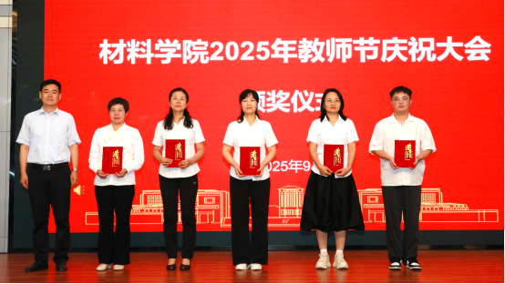 游志勇书记致辞,向全体教职工致以节日祝福,向受表彰的教师表示祝贺,并对新加入的青年教师表示欢迎。回顾过去一年,学院在团队建设、人才培养、科研创新和管理服务等方面成果丰硕。他指出,材料学科发展机遇与使命并存,希望教职工以优秀教师为榜样,涵养师德、锤炼本领、凝聚力量,号召大家共筑学院美好未来,为国家教育和民族复兴作贡献。