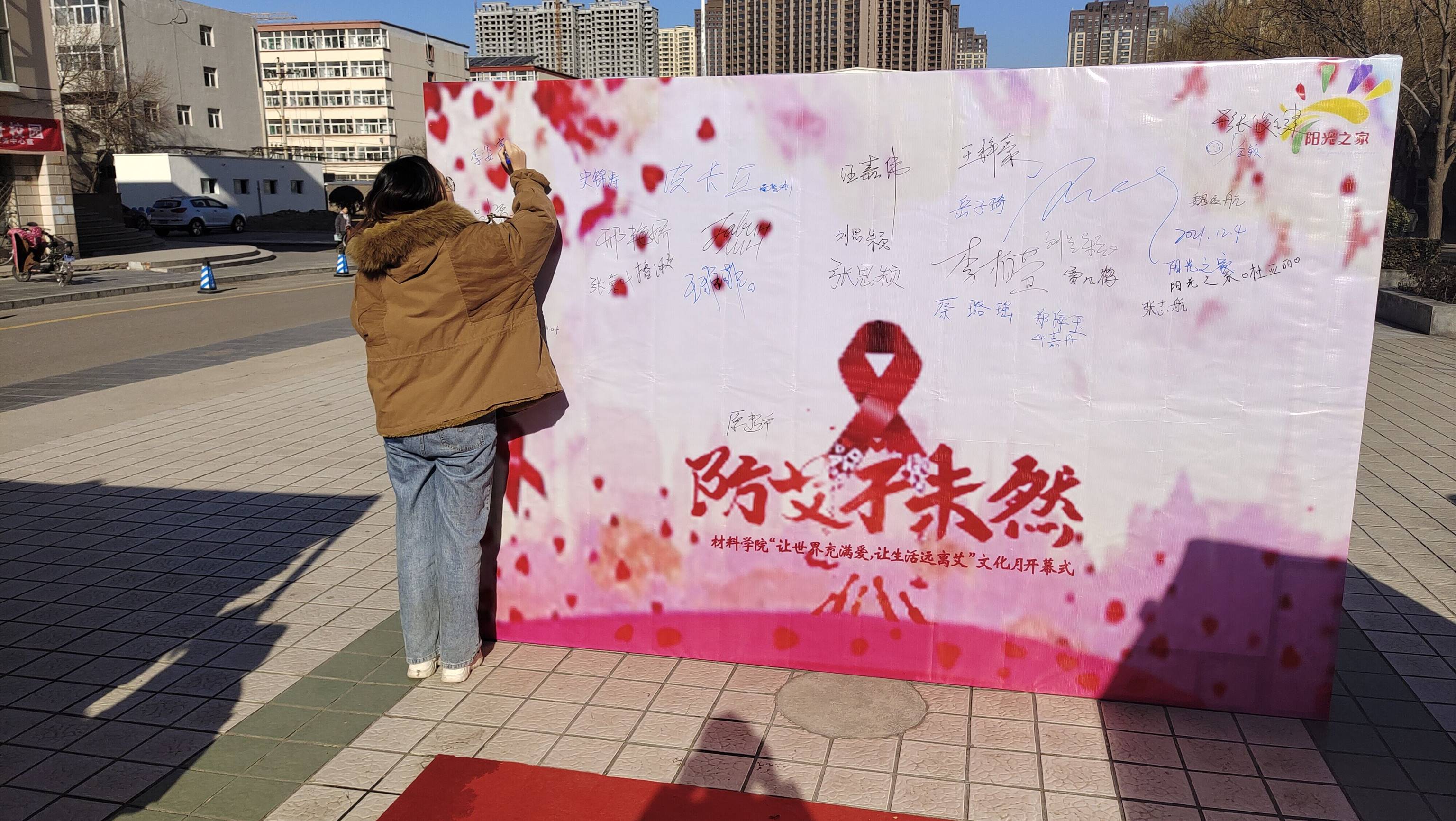 开幕式上,“阳光之家”充分利用现有的艾滋病宣传资料,开展宣传教育工作,并通过有奖竞答的活动鼓励现场同学参与其中,同时对员工们提出的问题进行现场讲解,活动中大家在签名墙上写下了自己的名字,大家的名字汇集在一起,就像我们老员工筑起了坚不可摧的防治艾滋病防线。“防艾文化宣传月”活动持续一个月,期间将会面向全校员工举办“老员工预防艾滋病知识竞赛”、知识讲座等多种形式的艾滋病知识宣传教育活动,在青年员工群体中不断扩大艾滋病防治知识的知晓率,积极为遏制艾滋病传播贡献力量。