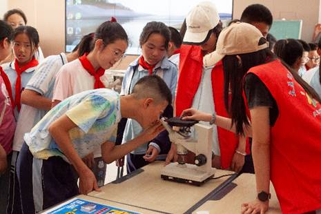 活动现场,六个神秘的实验展位宛如科学游乐园,孩子们手持集章卡穿梭其中,眼中闪烁着好奇的光芒: