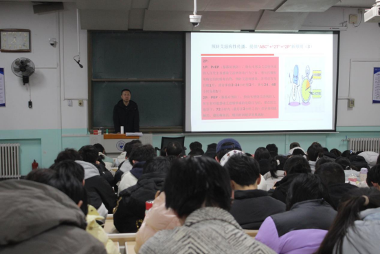 结合高年级员工及研究生的社交特点与认知深度,郝瑞岗副主任结合太原市艾防工作实际与全国青年员工感染案例,系统讲解了艾滋病的流行趋势、性传播风险防控、暴露后72小时阻断等关键知识,特别强调了规范治疗对控制病情的重要性及国家“四免一关怀”政策的保障作用。在互动环节,同学们积极参与,现场氛围热烈,反响良好。
