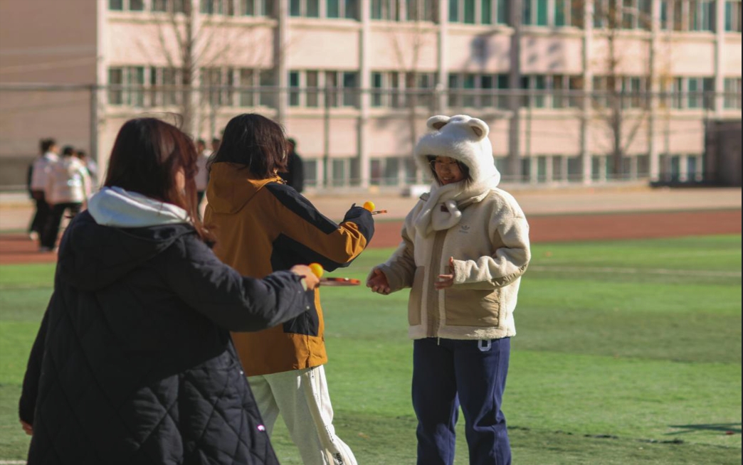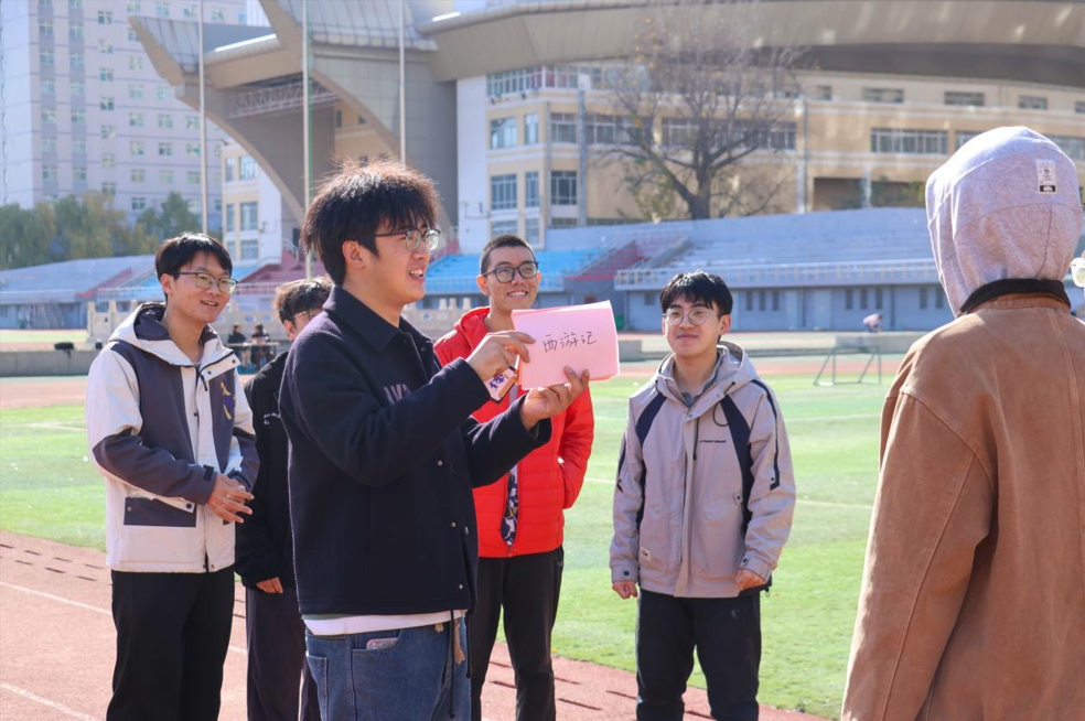 “六人七足”是培养舍友默契的试金石,宿舍6位成员步伐一致,相互协调,共同向终点冲去,进一步增强宿舍成员间的团队意识;“默契大挑战”如同一场热闹的头脑风暴聚会,宿舍成员分成二人组和四人组,一组通过语言描述、动作比划传达信息,另一组负责猜答案,舍友间的默契大配合,提升舍友间的沟通理解能力,让彼此的心靠得更近,使宿舍氛围更加和谐温暖;“限时挑战”是对宿舍团队协作的极限冲锋,宿舍六个人限时180秒,依次完成捏鼻子大象转、手指对手指、叠衣服、穿针、扔水瓶、跳大绳的任务,它培养了同学们在高压环境下的协作能力和应变能力,让大家明白每个成员在团队中的重要性,增强集体责任感;“拍上运球”像一座考验耐心与协作的桥梁,六位成员分两组,相对而站,间隔5m左右,按顺序用乒乓球拍运球至对面,依次完成接力,锻炼大家的专注力和团队协作的稳定性,让大家明白了在团队活动中保持耐心、稳中求进的意义。